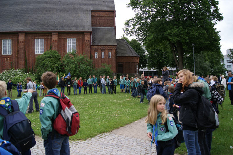 Nach dem Gottesdienst in der Anscharkirche, haben sich die Stämme Bugenhagen, Rickling, Husberg, die Turmfalken und Gadeland auf dem Weg zum Lütjensee gemacht. Dort angekommen wurden die Jurten und Kothen bezogen.